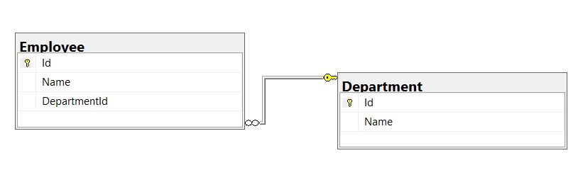 Example: Consider the following table relationship between the Employee and Department tables, where the Employee table has an optional DepartmentId column